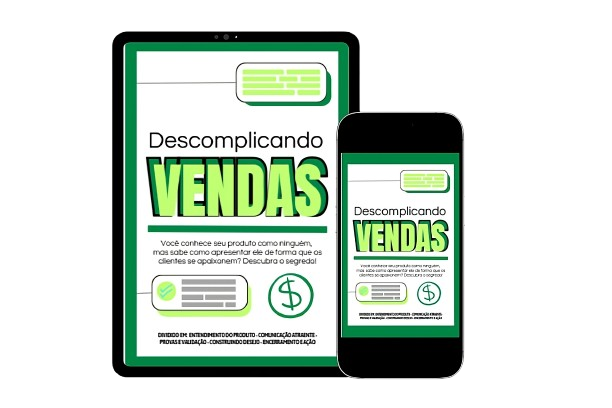 No e-book Descomplicando Vendas, você vai encontrar métodos e orientações que farão você vender o triplo de hoje, nunca mais fique com medo de falar de seu produto e deixe a sua insegurança de lado.